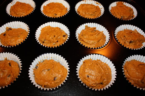 Spoon mixture into lined muffin tins. This recipe will make 3 dozen muffins, but it will depend on how full the tins are filled. These really don’t rise very much, so you can fill the tins pretty full. If aesthetics are a concern, keep in mind that how they look going into the oven is very much what they will look like coming out of the oven.