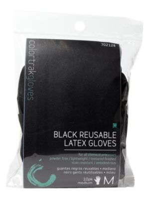 - Gloves. I know the box usually comes with a pair, but one-size fits all is not always the best way to go. I like gloves that fit so I can feel what I’m doing. Especially when I’m working in the back of my hair that I can’t see. Sally’s sells these black latex gloves for about three bucks and you can pick your size. Best part is, they’re reusable. Just wash them with soap and water and you’re good to go. All the other items above can be found at Sally’s too. (Besides the color.)
