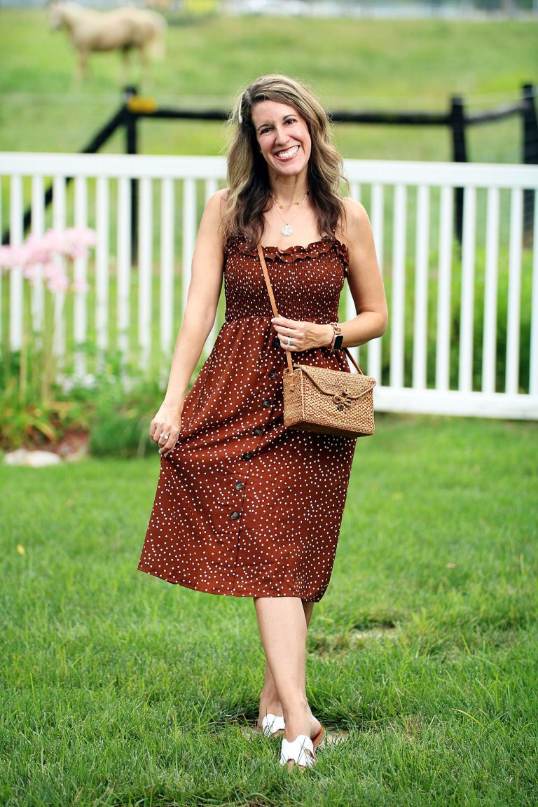 Crissy’s outfit looks chic with a pair of black tassel booties.