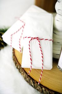 I added some tissues tied with baking twine that can easily be taken while on the way out the door. I always like to carry tissues with me during cold and flu season and it is nice to be able to grab one of these easily while I’m on my way out.