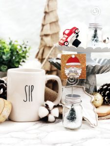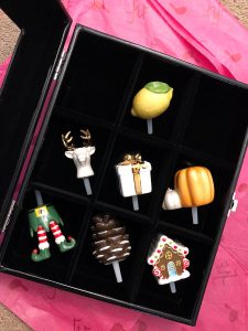 Lauren at Mom Home Guide and I met through a Clever Girls gift exchange several years ago and we’ve exchanged Christmas and birthday gifts ever since! I even got to meet her at Haven this last summer. She really got me some adorable items this year! I love the little mini place card holders that have the trees and snow inside mason jars! I just made some of these (but, much bigger!) to put inside my shelves in my serving area. She also knows I’ve started to collect Rae Dunn items and got me this adorable ‘Sip’ ceramic coffee cup! It’ll get A LOT of use! She sent me some cotton picks and a red fire truck wine cork! Thank you so much, Lauren. I LOVE everything and your friendship! 🙂