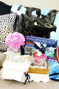 The How to Train Your Dragon 3 Exclusive Walmart DVD Release includes 2 Funko keychains and I easily found it on my last shopping trip at Walmart. There are lots of How to Train Your Dragon apparel and toys available at Walmart to make your movie experience even better! We purchased the Hiccup & Light Fury Rider and Dragon toy, which has the new girl dragon released in the movie! Plus, a comfortable How to Train Your Dragon 3 Kids Silky Soft Throw to snuggle up with while watching the movie and enjoying the dragon smoothie we’ve made.