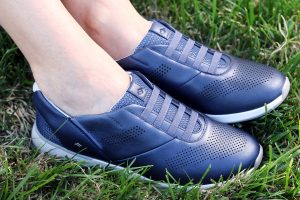 KIZIK has patented F.A.S.T.® (Foot Activated Shoe Technology), creating a first of its kind step-in design with a revolutionary lightweight aerospace-grade titanium rebounding heel that fits snugly to give shoes a custom fit. I am wearing the Atlanta Navy Shimmer pair and it works so well with the navy, olive and yellow colors in my shorts.