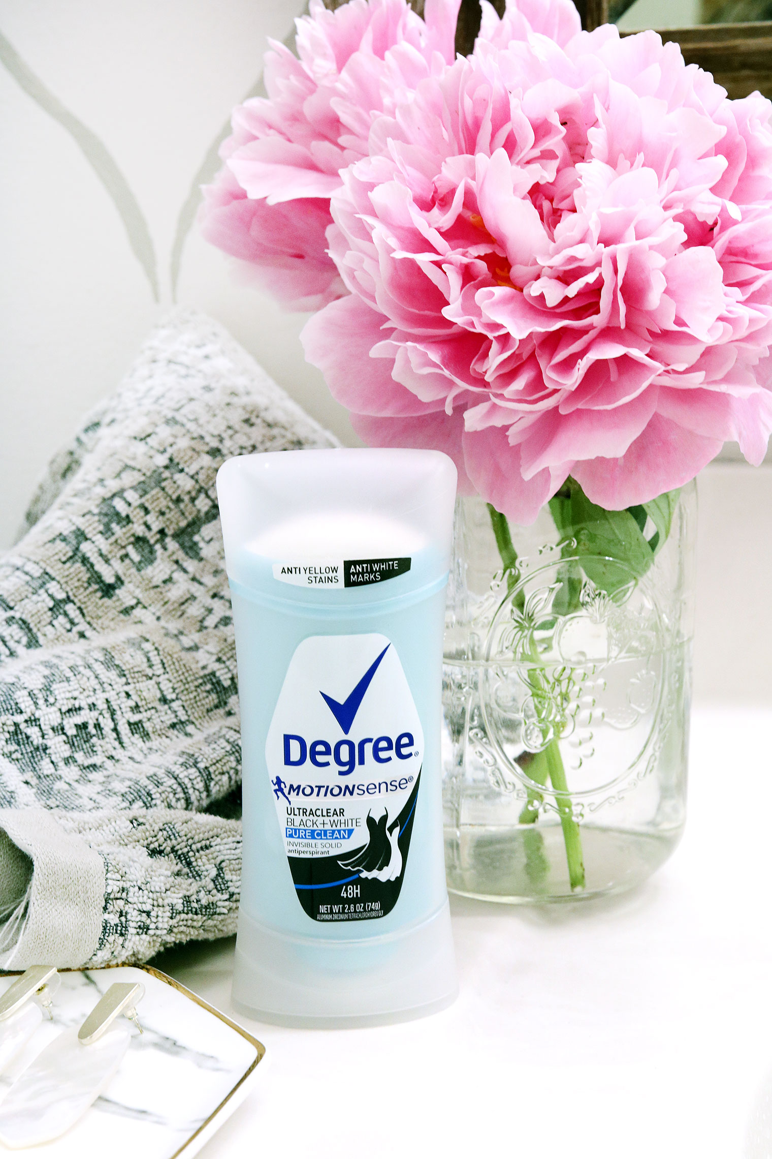 Degree UltraClear Black+White Pure Clean Antiperspirant Deodorant Stick is a MotionSense® ANTIPERSPIRANT DEODORANT. This means that it features Degree MotionSense® technology that keeps you fresher with every move. You’ll be fresh all-day with an airy fragrance that will make you feel clean. This deodorant offers 48h protection against sweat and body odor and is alcohol free. Find more info HERE.