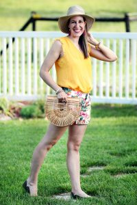 When I saw these Finnegan Printed Shorts, I just squealed. I love them THAT much! The shorts have a lot of colors in them that I have in my closet (pink, green, white and yellow), so it’ll be fun to mix and match tops with them. I don’t have a lot of yellow in my closet, so I was really excited about the Karlee Ruffle Detail Blouse and the fun ‘short/almost tank top’ sleeves. The yellow blouse is thick enough that I don’t need to wear a cami or anything else under it, which makes it nice and breathable for the summer.