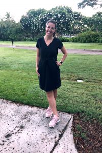 We did an 11 hour day during our trip to Maui to drive up and then back down the windy (curvy) roads to Hana. I’ll be sharing a post about this journey soon on the blog. I knew I wanted to be comfortable, since we’d be in the van all day with our driver and getting in and out to explore. I wore this stretchy polyester dress from REI, which is breathable and offers UPF 50 sun protection. They only have one style left HERE on their site. The dress also has pockets and is so cute with a pair of colored sneaks.