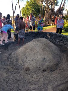 This is where they had the pig buried. Poor piggy! 🙁 Before the luau, they had several stations for you to walk around and see them doing different things… one lady was making stamped bookmarks (I grabbed 2 for the kids), they had a guy giving out traditional Hawaiian appetizers, a lady teaching dance, etc. The luau included a full open bar and buffet. I try to take some days off from drinking on vacation. I seriously can’t drink everyday for a full week on vacation! This was one day I had planned not to drink alcohol and I was excited they made me virgin drinks from the regular drinks on the bar menu.
