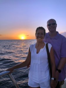 The same lady that took our first photo, took this photo of us by the sunset. So pretty. The sky is literally purple and almost matches the hue of Brian’s shirt. What a special evening that I’ll never forget sharing with Brian! 🙂