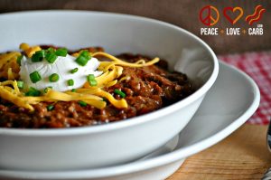 This Slow Cooker Low Carb Chili from Peace, Love & Low Carb (she also has a lot of other good low carb recipes!) is really good. It is so flavorful, you won’t even miss the beans!