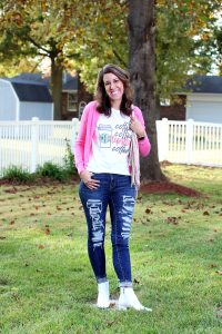 There is just something about a fun tee, especially when it is monogrammed! Mountain State Monograms offers a wide selection of ‘just for fun’ and holiday t-shirts in a variety of styles. When I saw this coffee, coffee, lipstick, coffee tee in pink I KNEW I had to have it… it also comes in red. In fact, I enjoyed a pumpkin cream cold brew with it this weekend… I’m all about accessories! 🙂 You can save 10% off by using the code Carrie10 on any purchase at Mountain State Monograms.