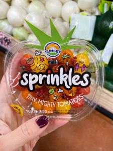Cherry tomatoes and tomatoes in general are one of my fave foods! I saw these Sprinkles Tiny Mighty Tomatoes on my last trip and picked them up. Not only are they cute, they’re sweet and juicy!