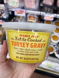 I know Thanksgiving is past us, BUT I had to share this delicious and easy weekday meal I made for my family before Turkey Day. I purchased the Turkey Cranberry Meatballs and then drizzled the Kettle Cooked Turkey Gravy over them. I whipped up some of the boxed Trader Joe’s Stuffing Mix (not shown) and then for dessert we had the Nantucket Cranberry Pie. SOOO good, y’all! So good!