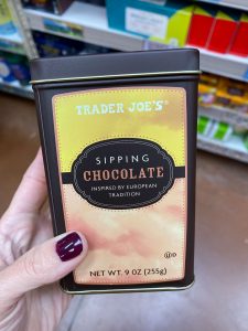 This Sipping Chocolate is SO good! The sipping chocolate is thick, so you’ll want to enjoy it with a spoon! You can also prepare it as hot cocoa instead of as sipping chocolate, which I haven’t tried preparing it that way yet. This would make a perfect gift for a friend or you could add it into a gift basket!