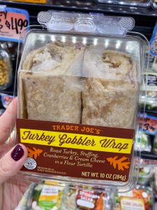 I usually pick up something for lunch while I’m in Trader Joe’s and I tried this Turkey Gobbler Wrap last time. I would give it 5/5 stars! SO good! I don’t know if it is still available, but if it is… TRY it! My favorite salad to pair with their sandwiches/wraps is the Tomato Mozzarella one. SO good!