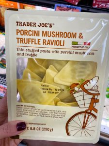 I always pick up 1-2 of Trader Joe’s stuffed raviolis when in the store and I tried this one last time. It was really good and flavorful, even though it was vegetarian! I usually pick up one of their white sauces (it is in a tub near the raviolis) to pair with it. You can freeze these raviolis if you don’t think you’ll be able to serve it by the expiration date.