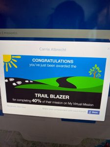 Per the recommendation of Nathan’s cross country coach, we BOTH signed up for a virtual challenge. This isn’t a race, more of a challenge… that goes on for several months. The challenge is to run from St. Louis to Kansas City, virtually. So, we each log our miles each week and we get a little further. I am at 40% and Nathan is at 30%… we’re doing great! It is so neat, because you can click and see a photo of what it would look like on the street where you are each week! I love seeing photos of different towns I’m in, etc. It is such a fun challenge! We have until the end of October to complete it.