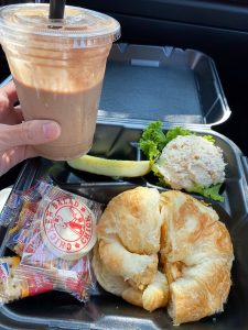 Brian and I tried a new restaurant recently called Chicken Salad Chick. It is such a neat concept, really… they have different styles of chicken salad and you order it by the scoop or on a sandwich. I selected a scoop of chicken salad by itself and then I got a scoop of their DELICIOUS pimento cheese on a croissant. I think if I did this again, I’d reverse what I did and have the pimento on the side and the chicken salad on the croissant. Each meal came with a dill pickle, crackers and an iced cookie. We ordered our meal through the drive thru and then had a little car picnic. This really hit the spot, because I ran 10+ miles that day for my half marathon training!!