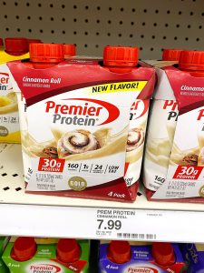 When I was in Target last… I saw this new Premier Protein Shake flavor… cinnamon roll! YUM!! We usually stock up on the chocolate flavor at Costco, but I had to try this and loved it!