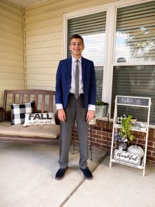 Nathan’s freshman year has been pretty normal, or as normal as you can get while going to school during a pandemic. They’ve been going to school in person 5 days a week and a few weeks ago the school had a socially distanced homecoming. They had a dinner, games set up inside, s’mores stations and socially distanced dancing. Nathan decided he wanted to go to homecoming two nights before THE night of the dance. Yeahhh… so, thankfully Kohls came to the rescue with a sports coat and slacks! Lol! Nathan had a great time at the dance with friends.
