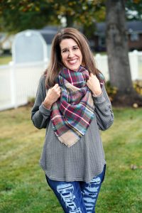 I’ve been all about the waffle knit this fall and this Easy Like Sunday Olive Green tunic from Mint Julep comes in several colors, has the perfect tunic length (not too long, not too short) and the perfect slouchy fit. This tunic can be layered with a colorful fall scarf over it, a light puffer vest or even worn alone with leggings. This tunic is a staple you’ll wear on repeat this fall!