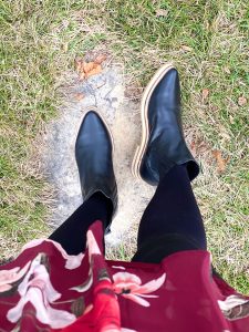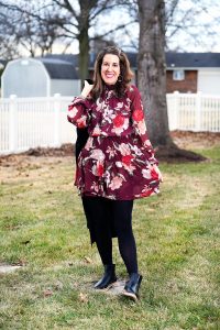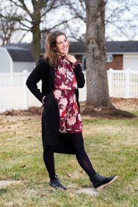 This floral dress has a burgundy base, which works great for the winter and is a refreshing pop of color under the black coat. This black knit coat is warm, yet not overly bulky. Since the warm coat is a longer length, I went with black booties, instead of taller boots to show my legs a little. ROOLEE has some wonderful winter pieces right now to complete your winter wardrobe. And, what is nice about ROOLEE is that you can add up to 8 items to your cart, try them at home for 7 days and then keep what you love and return what doesn’t work for you. ROOLEE has fashion items, kids items and even some home decor pieces!