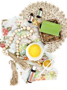 To make the Grow & Flow Hair Mask, you’ll need 1/2 tablespoon castor oil, 3 drops Beauty Within Essential Oil Blend, 2 drops Palmarosa Essential Oil, 1/2 tablespoon honey and 1 egg.