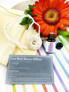 Shower Diffusers are all the rage right now for a spa-like experience in your own shower at home! For the Lava Rock Shower Diffuser, you’ll need Lava Rock Bead (included), String (included) and 2-5 drops Lavender 40/42 Essential Oil.