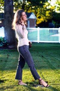 Now, let me tell you a little more about the shoes that Pashion Footwear gifted me. Pashion Footwear offers you a flexible shoe that can be worn as a flat OR as a heel (in various height and design options!). I’ve been wanting to try a pair of convertible shoes for awhile, so I was excited when Pashion reached out to me to try a gifted pair. I selected the The Pashionista – Tortoise Patent Block 4″ Shoes. It is so easy to snap off the heel and change it out for the flats. As you can see in the photo above, they share the instructions on how to swap them out right on the lid of the box. Easy peasy! In the photos in this post, I’m sharing how to wear a casual day-time look with the flats and then an evening look with the 4 inch block heels. They offer various styles, colors and you’ll save space in your closet and can carry along the heel or flat portion of the shoe in your bag if you need to make a swap out while you’re on the go! They include a small storage bag that you can put the heels/flats in, so it is really easy to transport them with you.