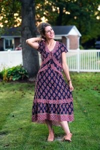 Today I’m here to share with you the cutest peasant dress that you’ll catch yourself twirling in all fall long. This Arabella Flutter Sleeve Dress from Daniel Rainn has flirty ruffles along the bodice, flutter sleeves and a bold boho print. This dress looks adorable with booties in the fall and will continue to look great with boots and a moto jacket as the weather gets cooler into the holidays.