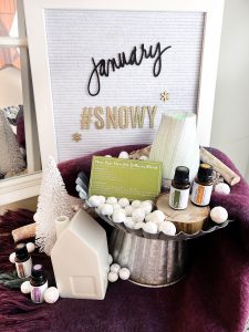 The Diffuser Blend this month is New Year New Me Diffuser Blend, which has a combination of essential oils in it that will uplift and calm you for a New Year and New YOU! I recently purchased this neutral white/gray diffuser that is smaller and will fit perfectly in a decorative tray (find it HERE). It worked nicely at diffusing the New Year New Me Diffuser Blend throughout the room in my home.