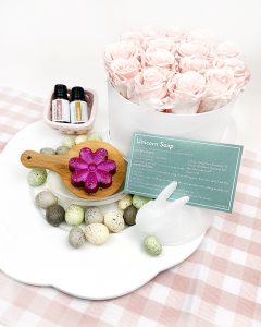 I’m excited to share the Simply Earth Essential Oils Recipe Box, for the month of March. This month’s recipes focus on using a new ingredient to Simply Earth, which is mica powder. This ingredient is so fun to work with and it’s been ethically sourced and naturally colored. Most mica powders use synthetic dyes, but this one is all natural! Simply Earth was intentional in choosing a jewel-toned color as jewel tones are considered to be the most universally flattering. This month you’ll receive a recipe box that will have essential oils and supplies to make the Find a Rainbow Diffuser Blend, Unicorn Soap, Citrus Joy Roll-On, DIY Shave Butter, Pink Tinted Lip Balm, and Eye & Cheek Tint.