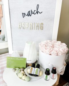 The Diffuser Blend this month is Find a Rainbow Diffuser Blend, which has a combination of essential oils in it that soothe and calm you. I recently purchased this neutral white/gray diffuser that is smaller and will fit perfectly in a decorative tray (find it HERE). It worked nicely at diffusing the Find a Rainbow Diffuser Blend throughout the room in my home.