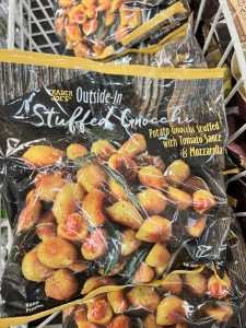 Outside-In Stuffed Gnocchi. Ummm, yes!! I bought this and I need to figure out how I plan to prepare it. I always seem to buy Trader Joe’s frozen gnocchi and then by the time it comes to prepare it, I’m scratching my head on what to do with it. A sauce? A little olive oil and fresh herbs? Hmmm? How do you prepare yours? Let me know!
