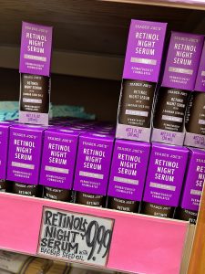 Ok, and I have seen Trader Joe’s advertising their new Retinol Night Serum (SUCH A GOOD PRICE!). I am a little overstocked on night serum right now, but I almost grabbed one to try it out. If you happen to try it, let me know what you think of it. I have been pleasantly pleased with any Trader Joe’s beauty product that I’ve used in the past.
