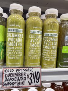 It seems that Trader Joe’s enjoys coming up with new cold pressed blends every now and then. This Cold Pressed Cucumber Avocado Smoothie looks SO refreshing!
