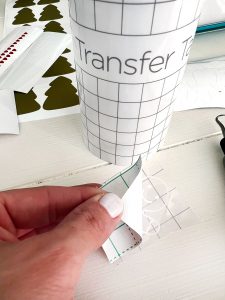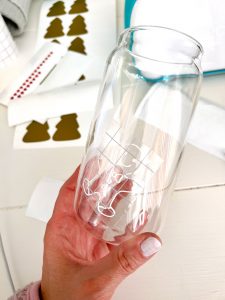 For the glasses with the trees, I placed all of the pink trees on the glass first, then I placed the gold outlines of the trees and then the white snowflake circles. It had more steps, but it wasn’t difficult.