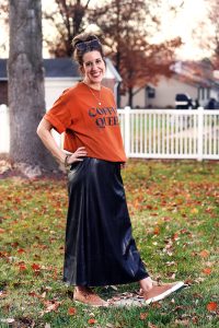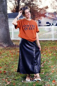 For the second look, I’m wearing Chicwish’s Coffee Queen Printed Tee in Caramel and their Drawstring Faux Leather Skirt in Black for a casual yet fun look. You all know I love me some coffee, so this tee was a no brainer. Click HERE if you prefer it as a sweatshirt. I styled this tee with the faux leather skirt for a sleek and stylish look and finished it off with my auburn colored sneaks.