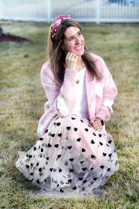 For the second look, I’m wearing Chicwish’s Pearly Contrast Heart Soft Fuzzy Knit Cardi and Heart Double-Layered Tulle Maxi Skirt in Blush Pink. This cardigan truly is SO soft, thick and I love the heart details, especially the ones with pearls around them. On the bottom, the double layered tulle skirt is the perfect romantic skirt with the velvet black hearts against the blush tulle fabric. Chicwish has a lot of great Valentine’s Day accessories, such as the 3D Heart Knotted Headband, that I’m wearing in the look above.