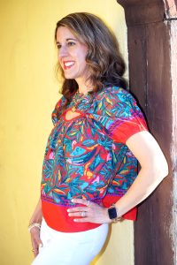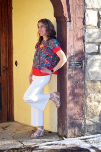 Second, I have the Sadie Top, which I KNOW I’ll be wearing when I go to Scottsdale in April! It features a designer inspired print, smocked cutout at the bodice (it’s very modest) and a lightweight cotton fabrication and puff sleeves. And, if you love this print, check out their Adelaide dress.