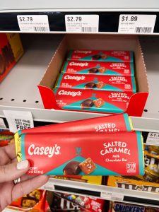 We love Casey’s, but we don’t have them in St. Louis. It is a gas station/store similar to Quik Trip. We stopped at one on our way home from Kansas City and I stopped up on a couple of the Salted Caramel bars and Autumn loves their Neapolitan dessert bar!