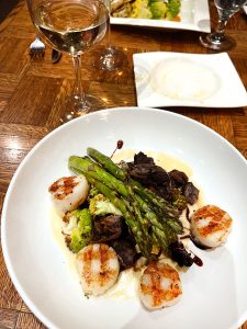 One of the highlights of the Kansas City trip was that Brian and I got to go to dinner on the first night while they were having a group party with the girls. Nathan had planned to come down with us to Kansas City, but he came home sick the morning we were planning to leave, so he stayed behind. We ate at Trezo Mare, which was a restaurant right across the street from our hotel. It was SO good that we took Autumn back there with us to eat the second night we were in Kansas City. I ordered these scallops with asparagus and purple potatoes and a delicious butter cake a la mode BOTH nights. It was that good!