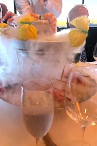 That evening, we had our first work dinner with Brian’s work and the plus ones. We ate at a steakhouse/seafood place called Mastro’s in North Scottsdale. It was delicious! We had a cocktail hour, a seafood tower for our appetizer (you can see it in the photo on the right, it had ALL kinds of seafood on it!), filet mignon/lobster tail and I had the butter cake for dessert. The sunset from the large window in the restaurant was beautiful—I love sunsets in Arizona!
