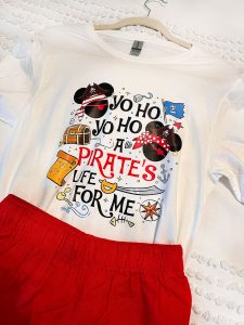 We are really excited for our Disney cruise this summer! This has been on my bucket list for a long time. I’ve done 2 Royal Caribbean cruises (YEARS ago!), but my husband and teens have NEVER been on a cruise. I can’t wait to sail! So, yes, our summer schedule includes a break/relaxation somewhere new! I’ve been planning my outfits and of course I had to find a cute shirt for the Pirates Themed Day. This Etsy shop came to the rescue and had super fast shipping!