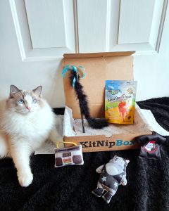 As you all know, we brought two ragdoll kittens into our household last year, Ollie Bear in September and Princess Aurora in November. They have the same dad, but are one litter apart with different moms. One thing I realized when we got them is that they are VERY active and enjoy having an assortment of toys. So, I started to look for a subscription box and decided upon KitNipBox.