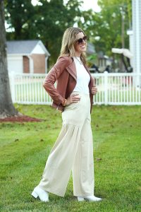 This is my first Liquid Leather Signature Jacket from Clara Sunwoo and it is a beauty. It’s lightweight, wrinkle-free and SO soft! I selected the Tan shade, which is a true terracotta color with sienna brown-orange undertones. I’m wearing the Modern Jewel Neck Tank underneath the jacket, which was a piece I received from Clara Sunwoo last Spring, click HERE to see the post and more photos of this gorgeous tank.