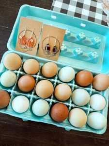 Jessica is the owner of the small shop Rural Cute Creations. I met her through blogging and we’ve kept in touch over the years with our seasonal gift exchanges! Jessica used to own chickens, but recently gave them away to someone that lives near her. She goes to visit them and picks me up eggs sometimes. I appreciate them, because they taste so much fresher than store bought eggs. She also gifted me a couple pairs of fall earrings from her shop.
