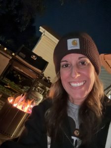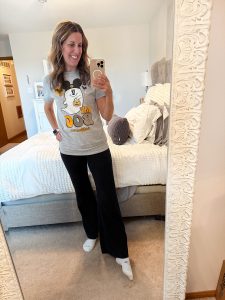 WELL… Halloween is different these days with a girl in high school and a young adult in college!! So, I won’t be sharing any photos of them. But, I will share ME! Brian went on a work trip to Orlando the week before Halloween and brought me back this cute Boo Halloween shirt from Disney. And, we had a nice bonfire in our solo pit with s’mores. It was a nice day!