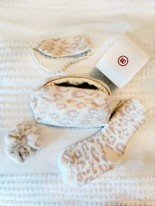 Here is the free gift that I mentioned above that you automatically received if you purchased one item from the Sleep & Body box. It includes a Plush Eye Mask, Scrunchie, Sock set and zipper bag. I plan to save it to give to my teen daughter for her upcoming birthday.