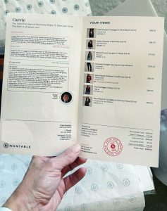 When you open the box, you’ll see the pieces they sent you and there will be a detailed note from your stylist and a large plastic bag to ship the pieces you don’t keep back to USPS. (The boxes arrived via Fedex.) I had a different stylist for each of my boxes. You get about 5 days to keep the items before you need to return the ones you don’t keep, but you can ask for an extension online. AND, after you return the pieces, make sure you cancel your subscription so they don’t automatically keep sending you more boxes. Now I’ll share with you want was in each box and what I kept, wanted to keep and did not want to keep at all.
