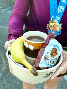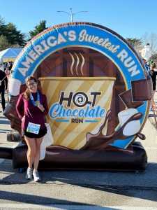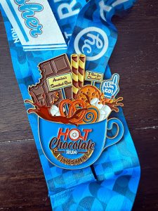 Hot Chocolate has AH-mazing food at the end of the race. You get a hot chocolate AND chocolate fondue!!! It took me a bit before I could actually eat it… chocolate always sounds great, but after running 9.3 miles on hills, it takes a bit for my stomach to want anything but water. It was SO good, though. The dippers were a rice Krispy treat, mini pretzels, a banana, a jumbo marshmallow and cookies. I wasn’t wearing it for the race (it was too warm), but they also give you a REALLY nice jacket that you can actually run in (!!) for this race.